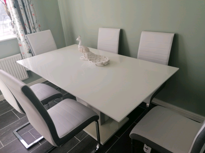 Stunning Dining Table 6 Chairs White Gloss Glass In Rumney Cardiff Gumtree
